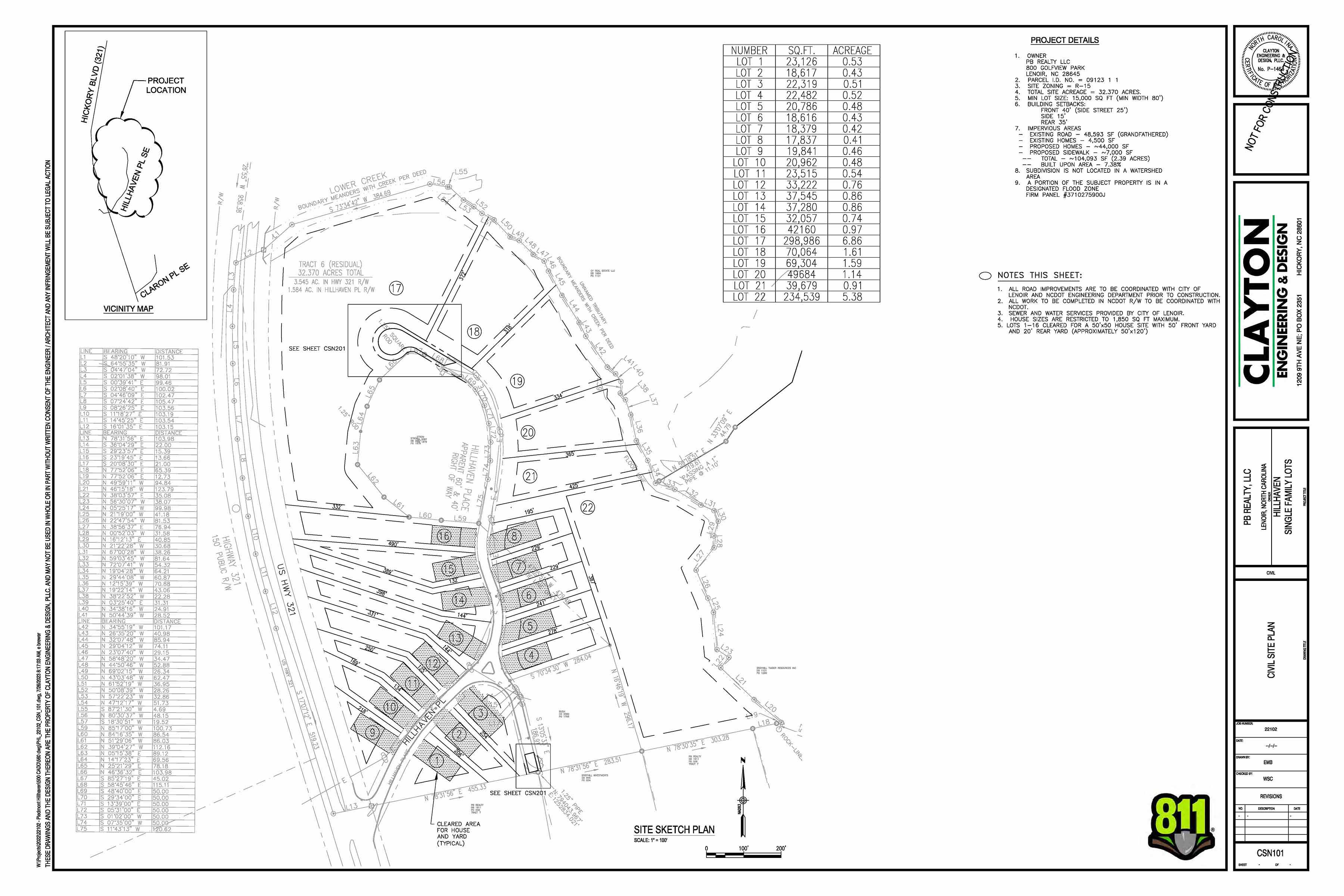 Hillhaven Place Highway 321 and Hillhaven Place SE Lenoir, North Carolina Type: Single Family Subdivision Acerage: 27.241 acres Lots: 22 SF |
